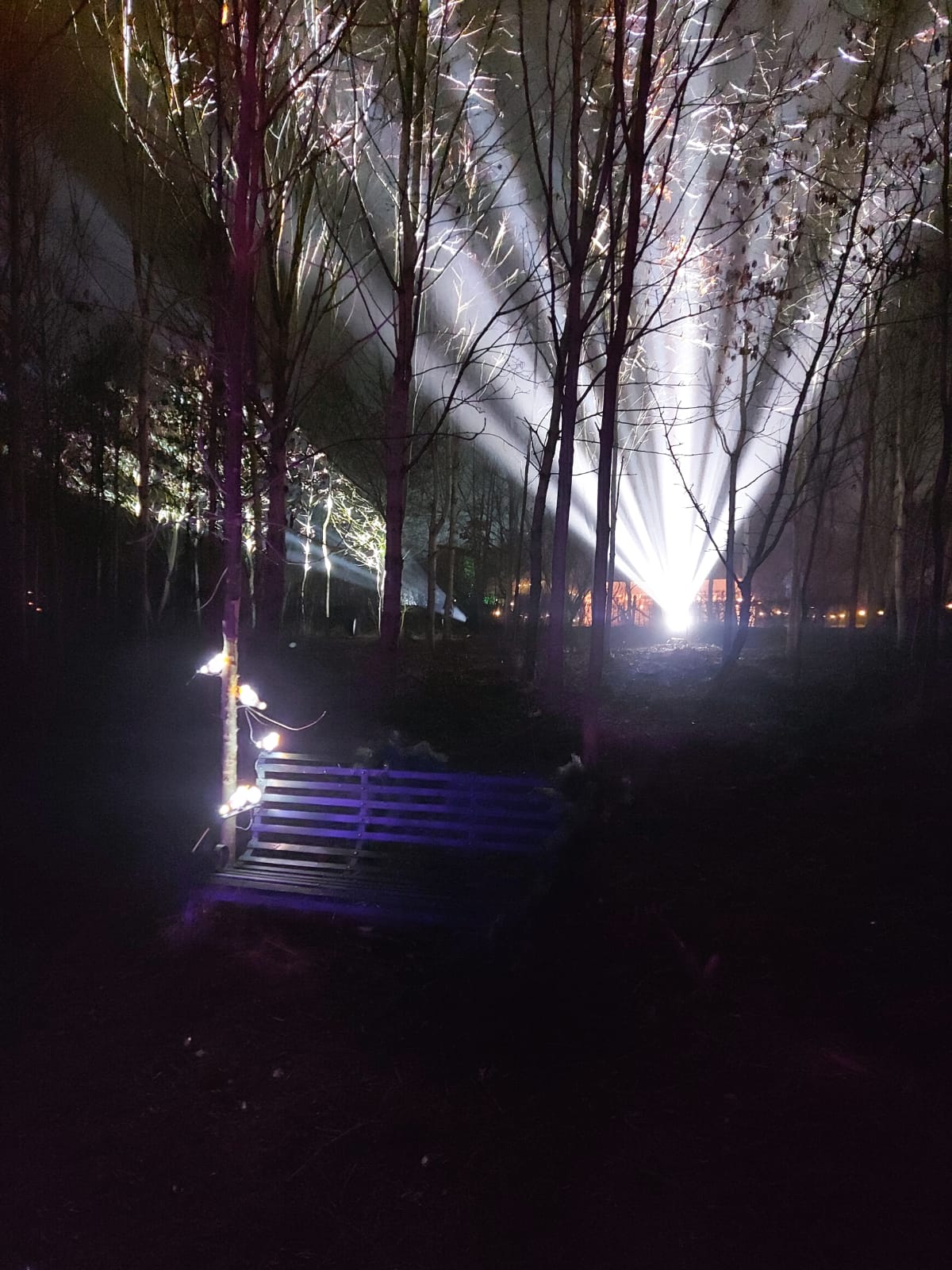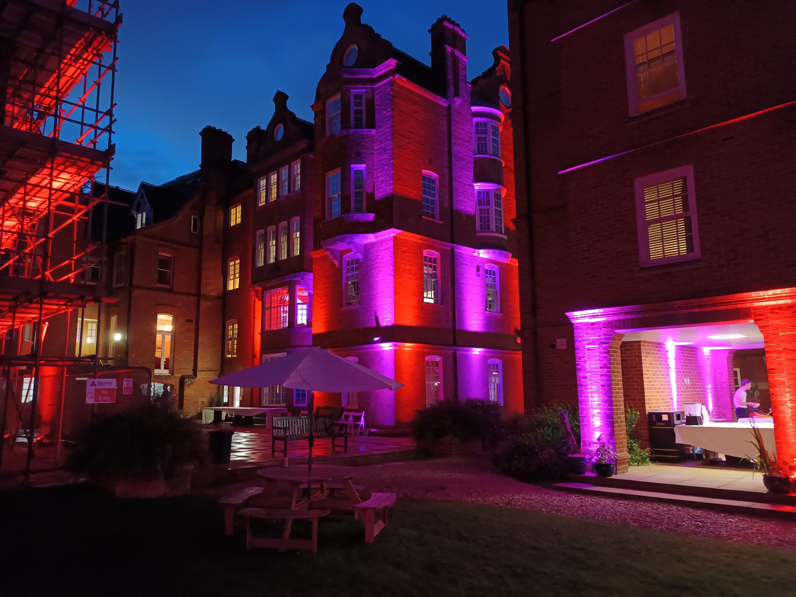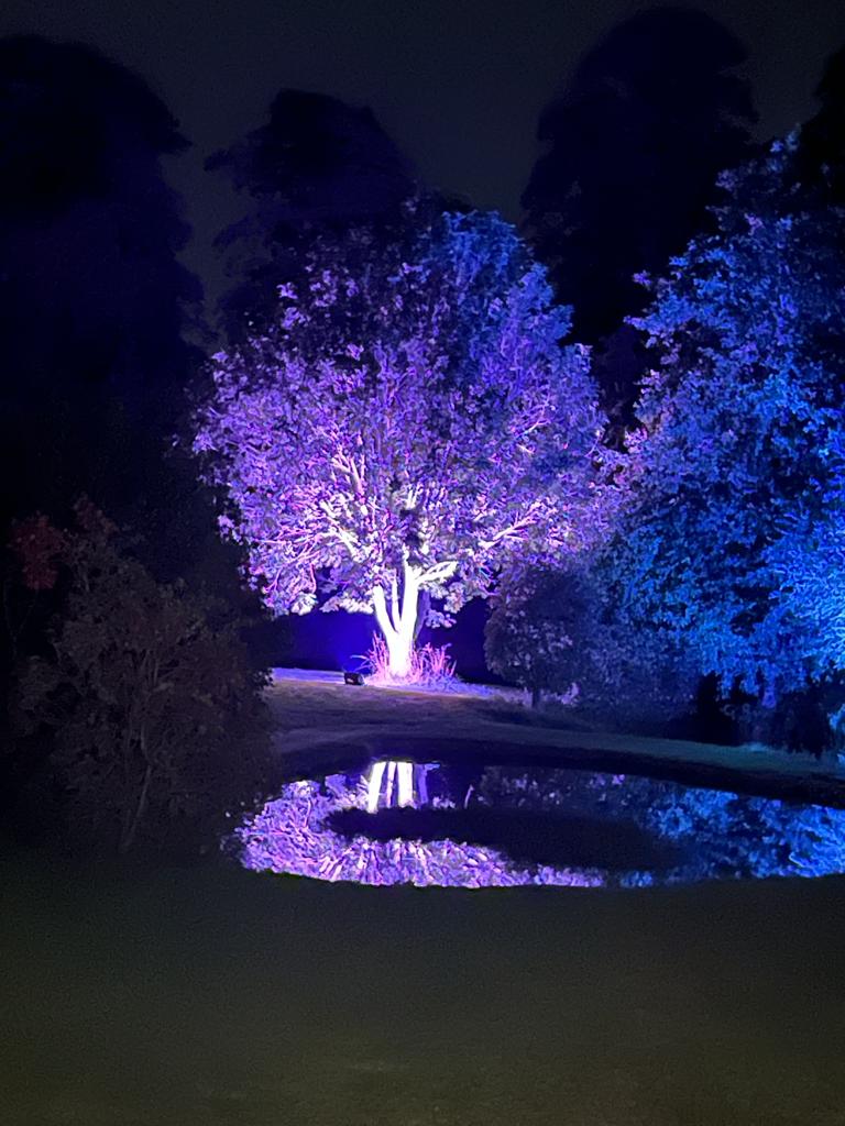 Outdoor spaces can be highlighted with our IP Rated led washes for large trees, architectural structures such as venue entrances or archways. Pathways and car park lighting for a safety aspect is also important to think about when planning and this is where our tall shepherd hook with festoon light strings and flood lighting can be useful. Power distro from portable power generators or gen sets can also be included in your packages as can high class facilities. If you really want to stand out we can add the fun aspect of sky flowers and sky searches to lead people to the party.
