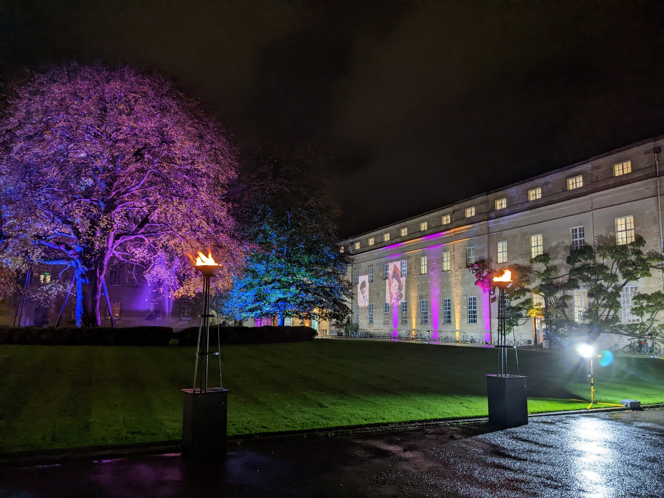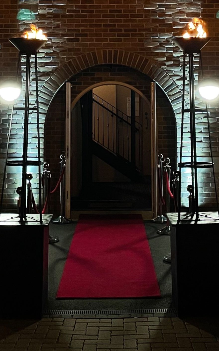 As well as the disco/club lighting package included we add wireless LED uplighting around the perimeter of the room or dancefloor space to include the rest of your venue into the party vibe. The uplighters can be set to a colour or alternate colours of your choice and an option to change colours if requested. We also offer our gas torch/flambeaux’s for the entrance which look great in any season.