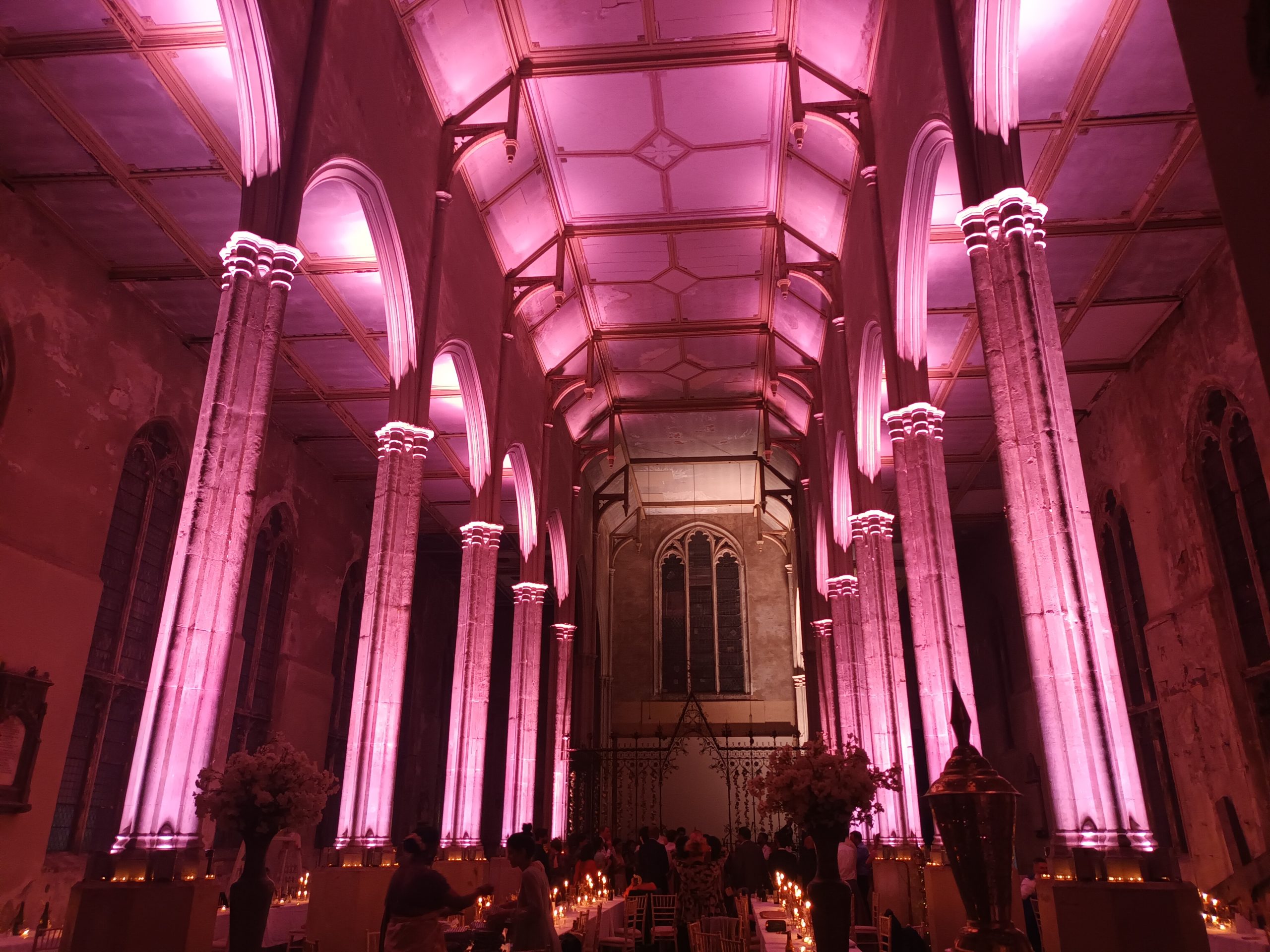 For marquees events we also offer fairy light canopies which can add a real cozy feel especially over the tables whilst guests are enjoying the wedding breakfast and really make the photo’s pop too! If you have an outdoor photo opportunity we can add archways with lighting, festoon canopies and strings for bridges and pathways and high power LED wash lighting for building entrances and trees to give it the magic it deserves.